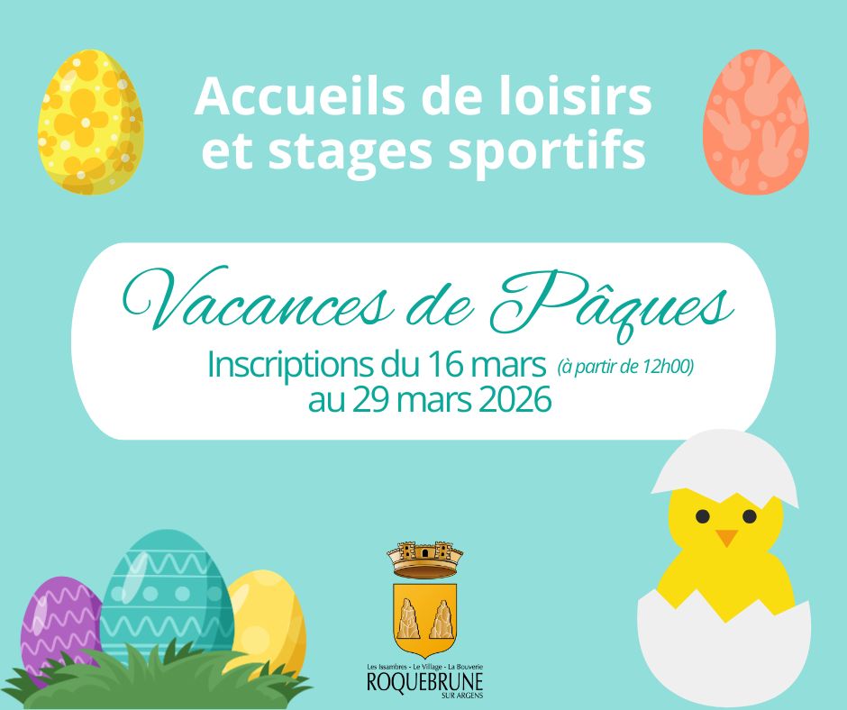 La campagne d'inscriptions pour les vacances de pâques dans les centres de loisirs et des stages sportifs se déroule du lundi 16 mars 2026 à 12h00 jusqu’au dimanche 29 mars 2026.