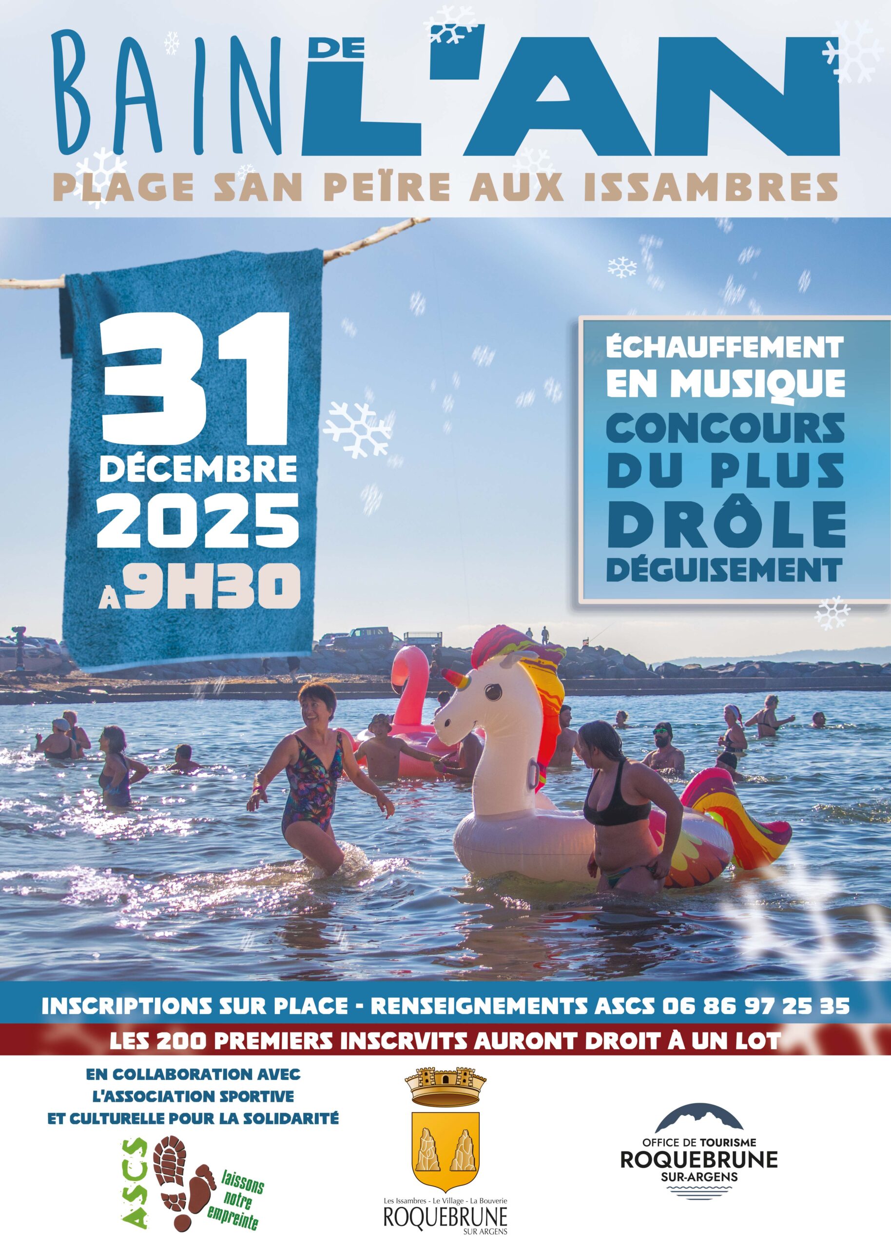 Rendez-vous le mardi 31 décembre pour le célèbre "Bain de l'an", à partir de 9h30 à la plage San Peïre aux Issambres. Échauffement en musique et concours du déguisement le plus drôle.