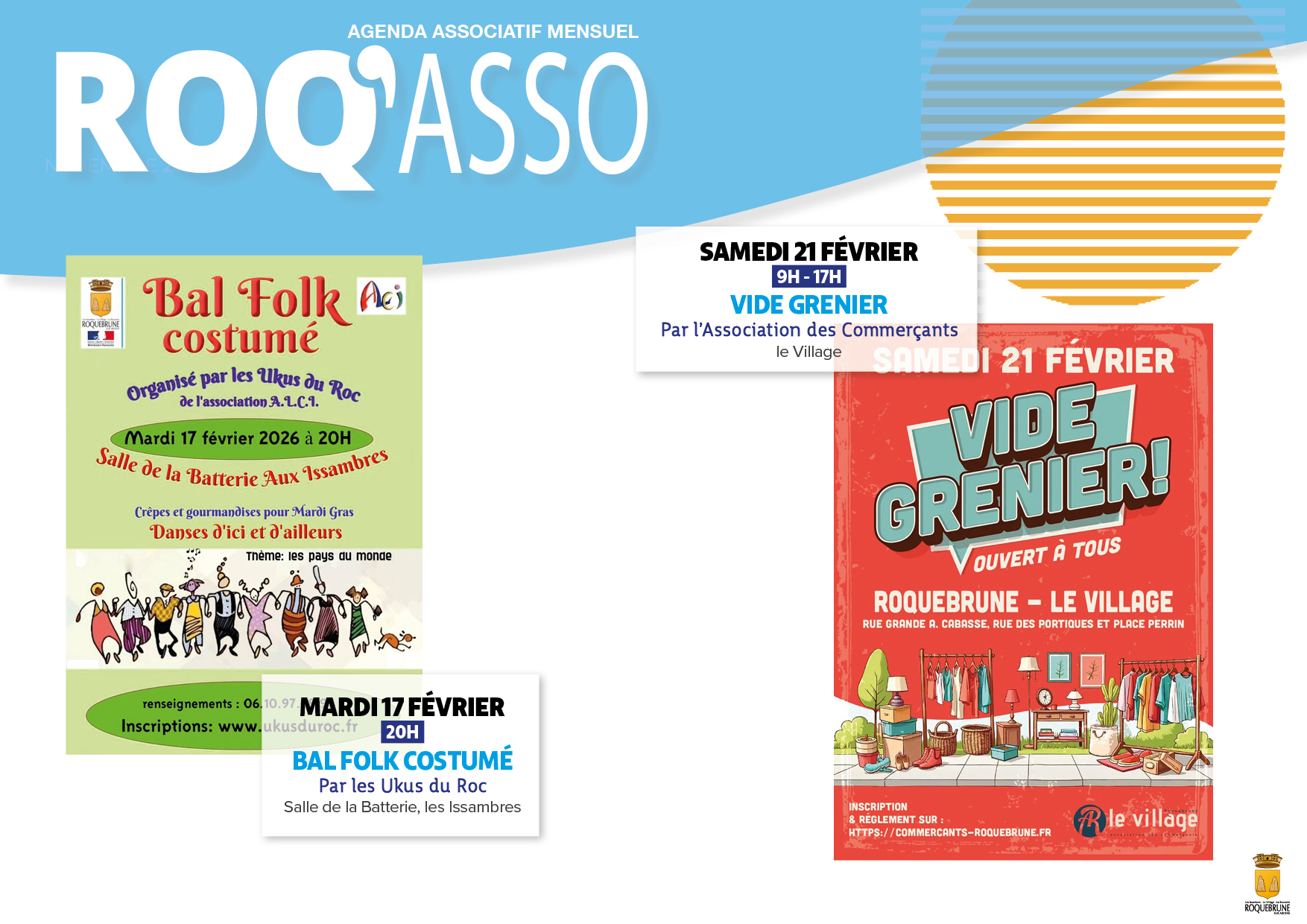 Tout au long de l'année, Roquebrune s'anime grâce à ses associations, créant un environnement riche en événements. En ce mois de février, les associations vous proposent un programme varié, empli de moments conviviaux et festifs.