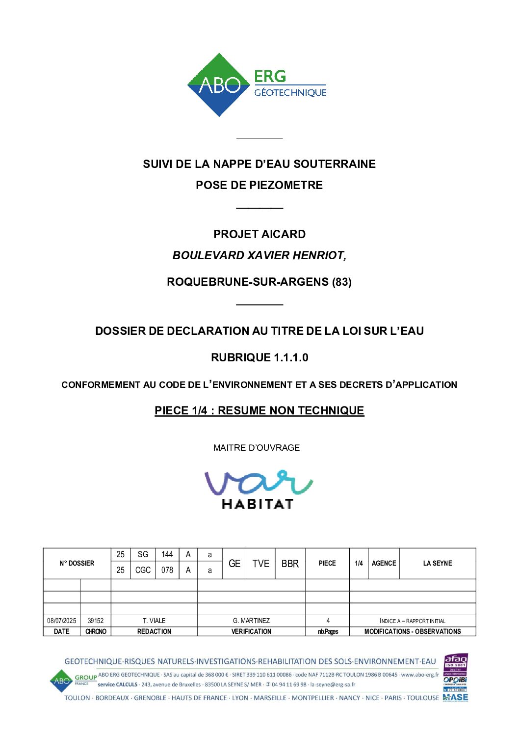 SUIVI DE LA NAPPE D’EAU SOUTERRAINE / POSE DE PIEZOMETRE